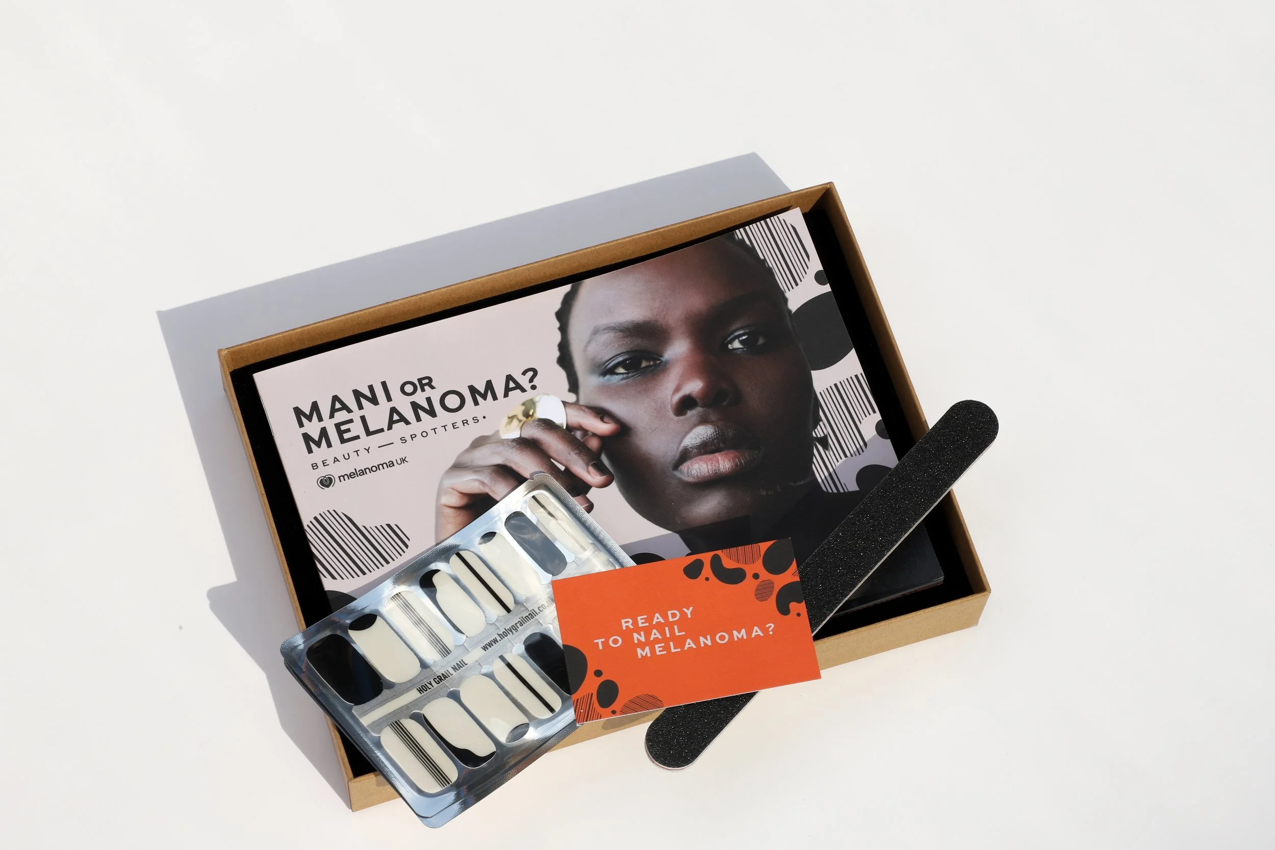 People of colour are much more likely to die from melanoma than caucasian people. The signs and symptoms are different on black and brown skin, and are rarely talked about. We designed a set of nail art stickers depicting the signs of melanoma, and with the help of the nail art community, we turned it into a nail trend.